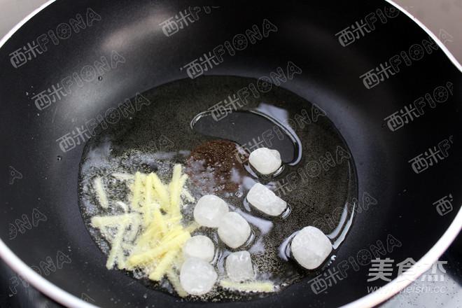 炒鍋,適量油,爆香一下姜絲,小火,加入冰糖,一點點水,炒出糖色