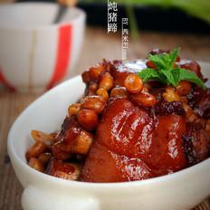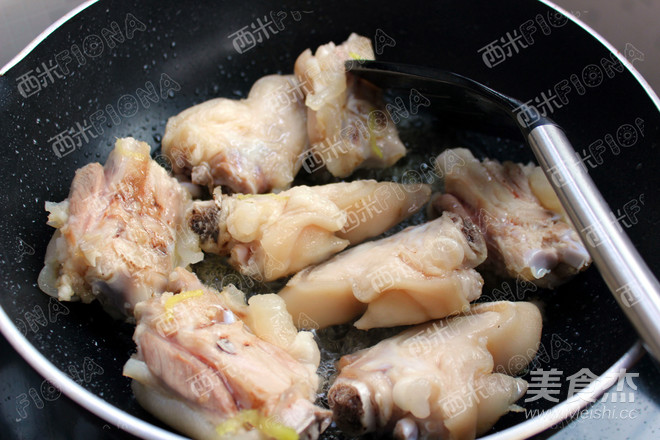 倒入豬蹄,翻炒上色