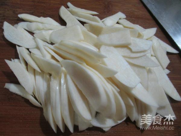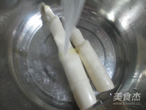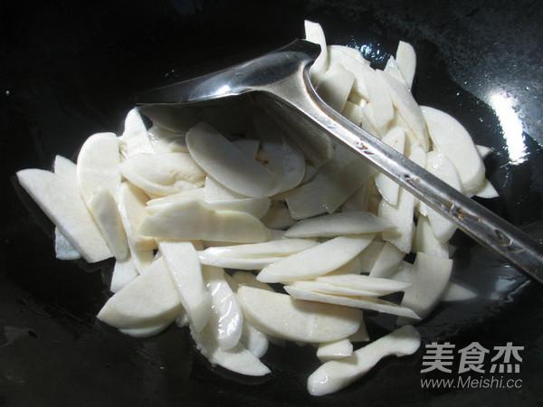 燒鍋加4湯勺油燒熱,下入切好的茭白翻炒一下。