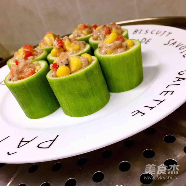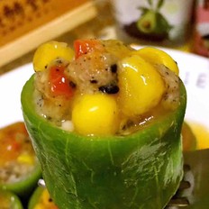 將調好的肉餡放入絲瓜中上鍋蒸好
