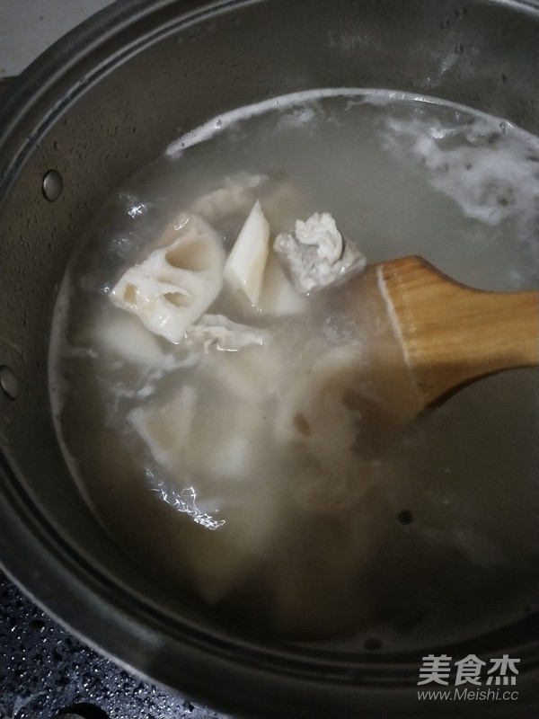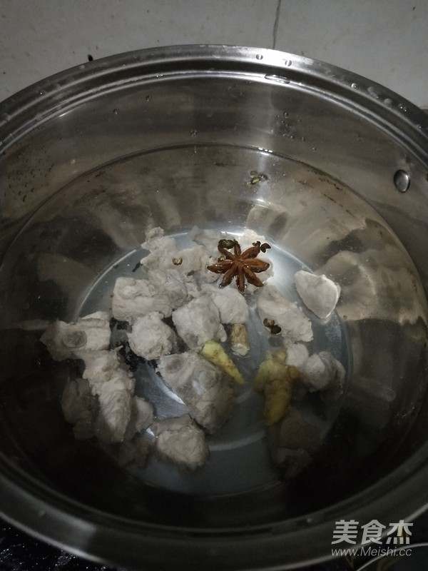 湯鍋放冷水加入排骨,大火燒開轉小火燉半小時