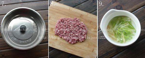 8.在面團發酵的時候準備餡料,將豬肉剁碎成肉末