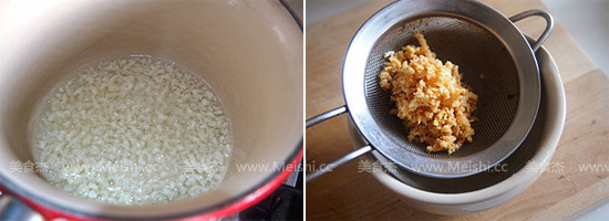 原料: 菠蘿、甜蜜豆、咖喱粉、椰漿、黃油、大蒜、香蔥、野生北極蝦15只、胡蘿卜、紅辣椒、鹽、白糖、雞精。 做法: 1、先將菠蘿切開,挖出果肉切丁。北極蝦拍干粉下油鍋略炸撈出,瀝干油。 2、胡蘿卜切丁,紅椒切丁,香蔥大蒜切末后待用。 3、將青豆用水煮一會后,撈出待用。 4、開小火,鍋內